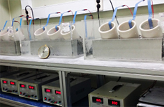 콘크리트 및 모르타르 시편에 전기화학적 작용을 이용하여 염소이온을 확산시키는 장비로써 염해에 대한 저항성을 측정하기 위한 장비